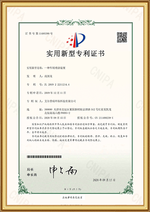 實(shí)用新型專利證書(shū)(一種車用噴涂裝置)
